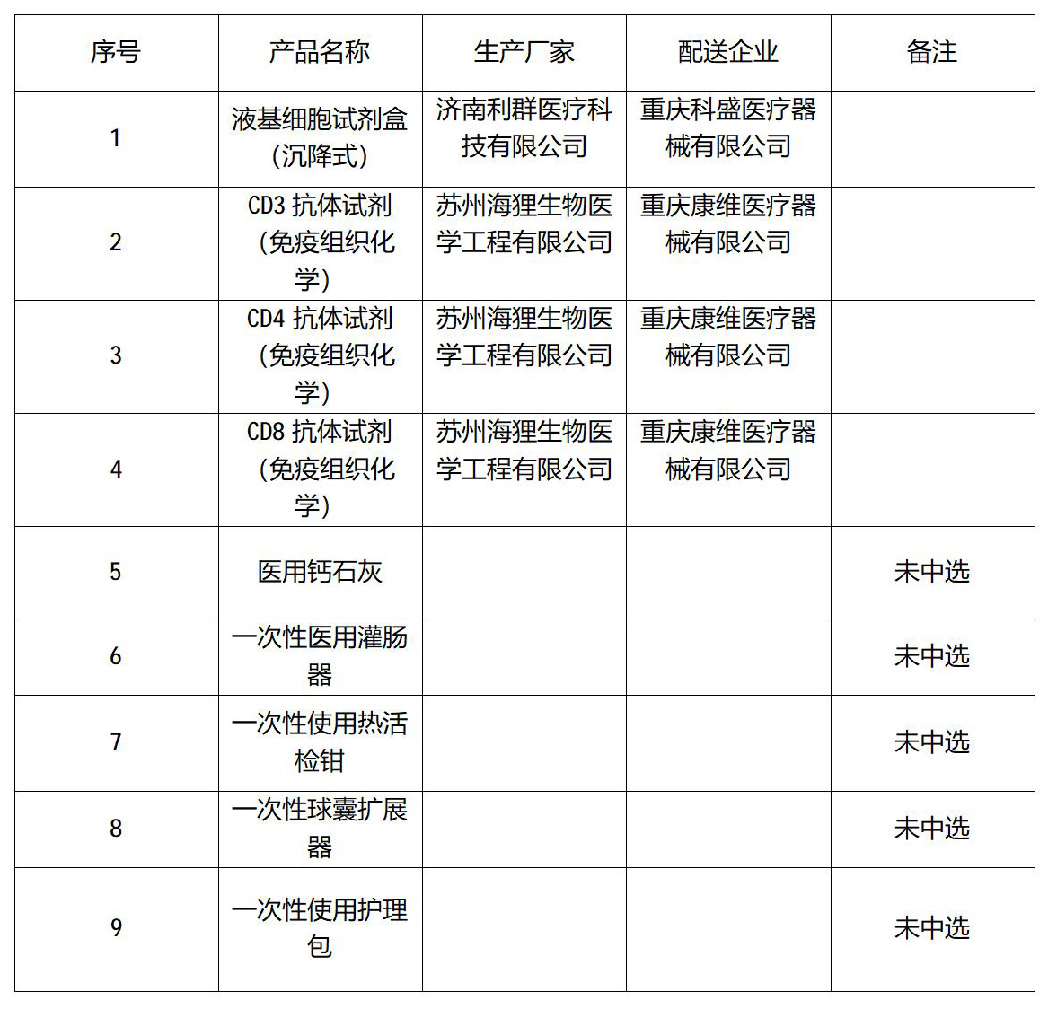 重庆市巴南区第二人民医院按采购程序对部分医用耗材进行了遴选,现将遴选结果公告如下(见下表):