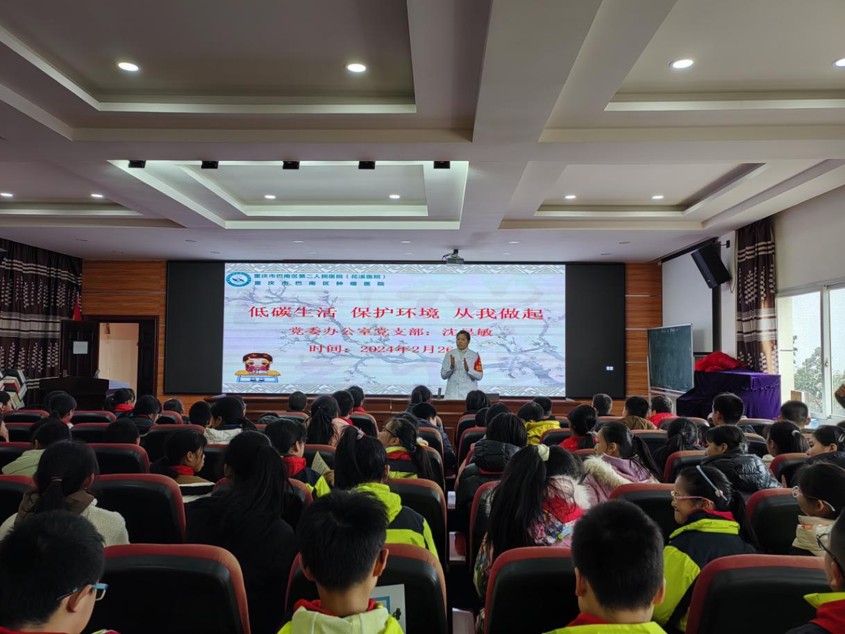 绿水青山就是金山银山,参与生态环境保护是我们共同的责任。为了普及生态环境知识,倡导绿色低碳生活方式、提高学生对环保知识的意识;2024年2月26日,党委办公室党支部走进巴南区花溪街道花溪小学开展“低碳生活 保护环境 从我做起”健康知识讲座。