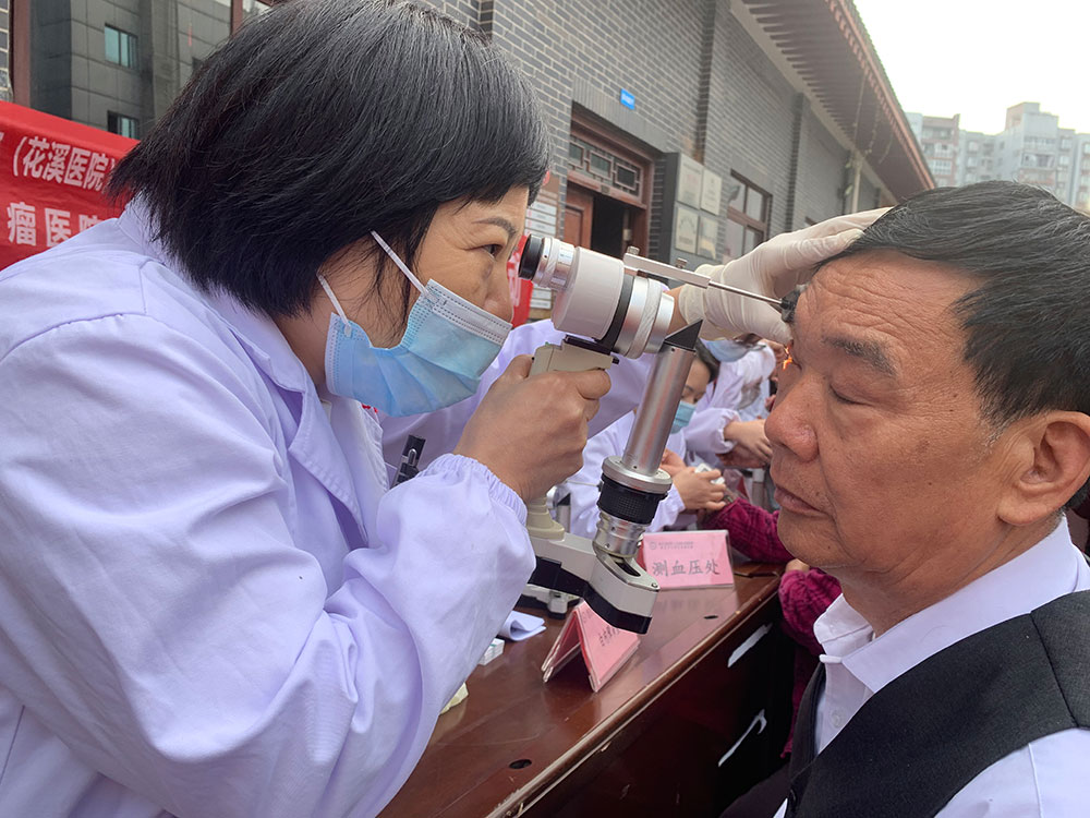 本次义诊活动团队由五官科主任陈楠、党支部书记、护士长王倩、支部党员吴怡、青年医生袁博组成,主要服务项目有:免费为社区中老年人进行白内障、青光眼、眼底疾病、眼部干涩不适等各种眼科疾病的诊断,同时发放相关科普宣传资料,对社区居民进行相关疾病宣传。