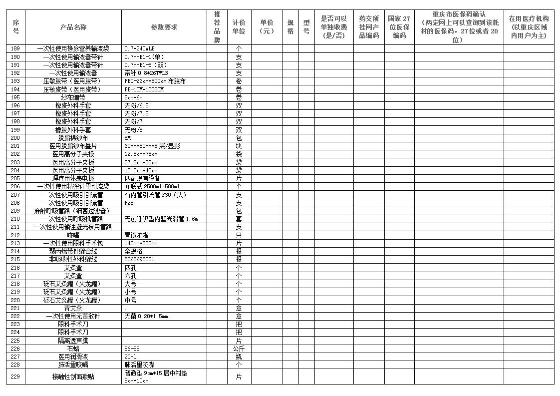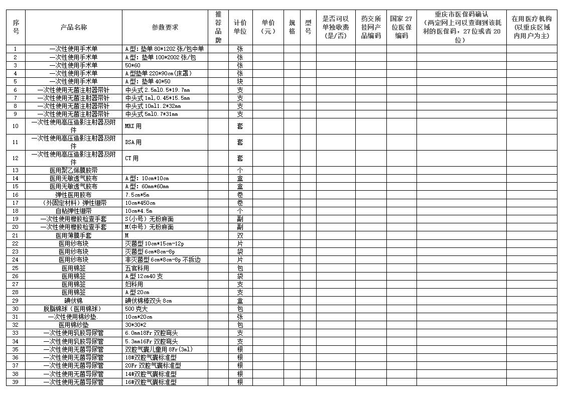 一、概述:因我院业务发展需要,我院需求一批医用耗材,现对供货服务进行咨询,欢迎具有相关资质且有良好信誉的厂商(供应商)参加咨询,并提供符合产品质量要求的相关资料(表格需提供纸质和电子档资料)。